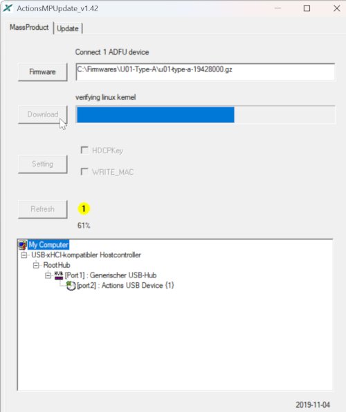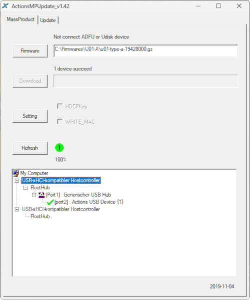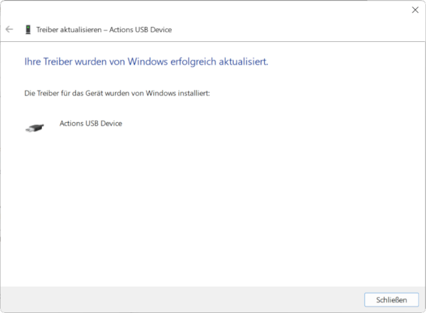 - Der Treiber für das Gerät „Actions USB Device“ wird nun installiert: